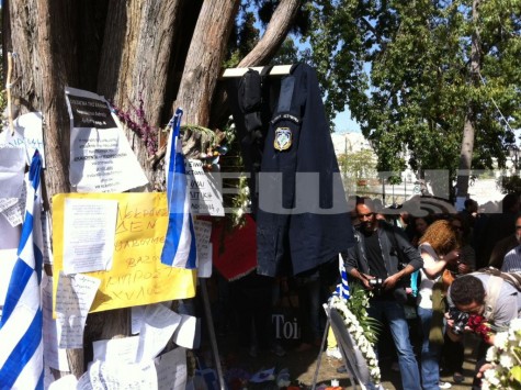 La vendetta contro la polizia:guardie speciali!... aggredite e spogliate di divisa e armi...e poi tutto appeso all'albero a Sintagma...del suicida greco.